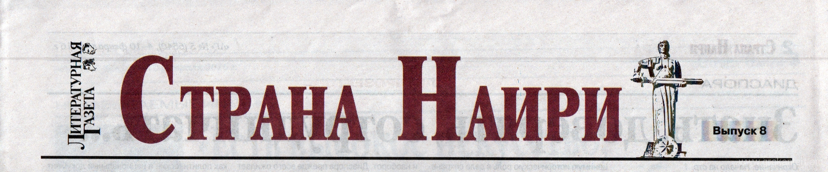 0«Լիտերատուրնայա գազետա» շաբաթաթերթի «Երկիր Նաիրի» հավելվածի 8-րդ թողարկումը սկսվում է Պարույր Սևակի «Նահանջ երգով» պոեմի փոքրիկ հատվածով` Ռոբերտ Ռոժդեստվենսկու թարգմանությամբ: Այս անգամ «Երկիր Նաիրիի» հարցերին պատասխանել է ՀՀ Սփյուռքի նախարարի տեղակալ Սերժ Սրապիոնյանը՝ հանգամանորեն ներկայացնելով նախարարության գործունեությունը Հայրենիք-Սփյուռք կապերի ամրապնդման կարևոր ոլորտում: Հարցազրույցը վարել է հավելվածի պատասխանատու խմբագիր Լիա Իվանյանը: Առաջին էջում տեղ է գտել նաև գրող Զորի Բալայանի «Աստվածաշնչյան դասեր» հոդվածը, որտեղ անվանի գրողի խոհերն են քրիստոնեության, հավատի խնդիրների շուրջ: Հեղինակի համար, «…որպես մասնագիտությամբ բժշկի, Աստված և՛ բարոյականություն է, և՛ էվոլյուցիա, և՛ փիլիսոփայություն և՛ հարգանք «հայրական շիրիմներին», և կրկին անգամ՝ բարոյականություն, բարոյականություն, բարոյականություն…»: «Անմոռանալի անուններ» խորագրի ներքո տեղ է գտել Առնո Բաբաջանյանի հետ Անատոլի Իվանուշկինի հարցազրույցը (նախկինում չհրատարակված)՝ «Կա բարձր արվեստ և արվեստ կա` օրվա սպառման համար» վերնագրով: Ինչպես հարցազրույցի հեղինակն է նշում, երբ 1982 թ. այցելել է մեծանուն կոմպոզիտորին, Բաբաջանյանին տեսել է վատառողջ, անկողնում պառկած. «Տեսնելով նրան անկողնում,- գրում է Իվանուշկինը,- ցանկացա ներողություն խնդրել և հետաձգել հանդիպումը: Բաբաջանյանն առարկեց. «Ո՛չ, մենք որոշել ենք հանդիպել և աշխատել: Իսկ դուք մի՛ քաշվեք, որ պառկած եմ, եթե ուզեք` կնստեմ: Ձեր հարմարությանը նայեք»: Ես, հակառակը, խնդրեցի, որ իրեն հարմար լինի: Պայմանավորվեցինք, որ պառկած կզրուցենք»: